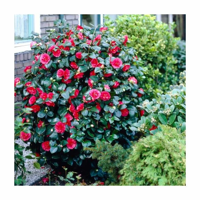 A classic evergreen shrub, thisΒ CamelliaΒ will bearΒ vibrant red blooms, which will decorate your garden from mid-winter through to the onset of spring. As such, this variety is perfect for maintaining beautiful floral interest when your perennials have died down for the winter months. Complementing these sumptuous blooms is this shrub’sΒ deep-green foliage; with waxy-appearing leaves that will look gorgeous on a dewy morning.