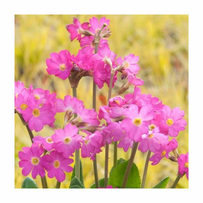 A hardy perennial, thisย Primulaย will form gently nodding,ย vibrant pink flowers from tall linear stalks. The sunny yellow centre of each flower beautifully complements their surrounding petals, making this perennial perfect for embracing a warmer scheme. ‘Grandiflora’ is suited to boggy soils, and as such, makes a good waterside plant.